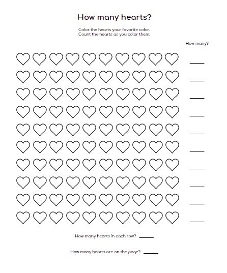 Color and Count the hearts